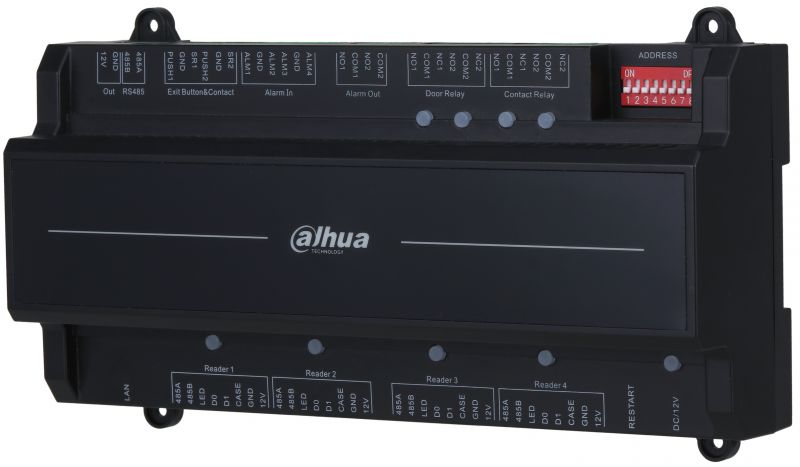 Řídící jednotka přístupu slouží k autorizaci oprávnění uživatele (kartou, kódem nebo otiskem prstu). Standardní funkce a periferie pro čtečky s výstupem Wiegand 26/34 bitů nebo s výstupem RS485. Nastavení přes LAN síť ze softwaru SmartPSS Lite. Napájení 12 VDC. Plastový kryt. Montáž volně, nástěnná nebo DIN.