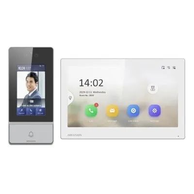 Sada IP systému 2. generace složená z videotelefonu DS-KH6350-WTE1, dveřní stanice DS-KV9503-WBE1, PoE switche DS-3E0105P-E/M(B), Videotelefon má obrazovku 7" s rozlišením 1024×600 px, Wifi 2,4 GHz, dveřní stanice má 2x kamerový modul s rozlišením 2x2 Mpx s rozpoznáním obličeje a horizontálním úhlem záběru 88°,4,3" dotykový displej, integrovaná čtečka karet Mifare, x tamper, 4x poplachový vstup: 2x odchodové tlačítko + 2x dveřní kontakt, 1x vstup pro dveřní kontakt, krytí: IP65 a IK08, sada umožňuje sdílení video hovoru s mobilní aplikací HIK-CONNECT pro smartphone/tablet., povrchová montáž, Balení obsahuje: IP dveřní interkom DS-KV9503-WBE1, videotelefon DS-KH6350-WTE1, 5 portový PoE switch DS-3E0105P-E/M(B), rozměry monitoru 175 mm × 113.5 mm × 21 mm, rozměry dveřní jednotky 182 mm × 85 mm × 26 mm.