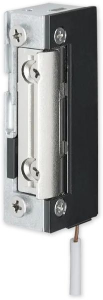 Elektromagnetický el. zámek Assa Abloy řady effeff, vhodný i do prostředí se zvýšenou vlhkostí či nebo náročným klimatem (venkovní branky, nechráněné vstupy), který propouští přes horní západku běžného zámku a montuje se do zárubní dveří. Po přivedení napěťového impulzu odemčeno, zámek zůstává odemčený do okamžiku otevření dveří, při jejich opětovném zavření jsou dveře blokovány. Konstrukce otvírače je vyrobena z korozi odolných materiálů, což zajišťuje dlouhou životnost otvírače i ve vlhkém prostředí. Zámek je typu přivedením napětí otevřeno.