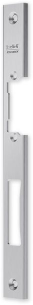 Čelní plech tvaru "U" pro pravé dveře, s otvorem pro závoru a výřezem pro závoru. Používá se hlavně pro zárubně plastových a hliníkových dveří. Přísluší k zámkům řady effeff.