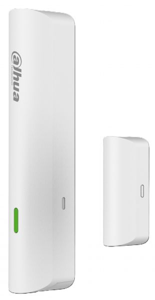 Bezdrátový magnetický detektor s měřením okolní teploty, umístění na dveře a okna mimo kovových, další 1 drátový detektor nebo jiné periferie, systém rozpozná ve které z připojených zón došlo k poplachu, LED indikátor stavu, tamper. Frekvence 868 MHz, zabezpečení AES-128, přenos 1200 m (viditelná vzdálenost), aplikací nastavitelný.