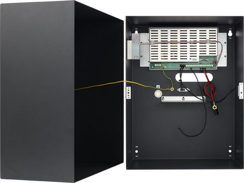Pomocný spínaný zdroj v plechovém boxu s LED signalizací, určený pro instalace do poplachových systémů se stupněm zabezpečení 2 a 3. LED zobrazují aktuální stav pomocného zdroje. Zdroj je v provedení AC/DC měniče, který se vyznačuje vysokou provozní odolností, vysokou účinností a minimálním ohřevem. Modul vyhodnocuje poruchu AC, AUX a akumulátoru a tyto stavy jsou signalizovány pomocí výstupních relé. Pro splnění bezpečnostní kategorie je potřeba vznik poruchy přenášet do systému. Výstupní proud AUX a dobíjecí proud akumulátoru je potřeba volit tak, aby byla splněna příslušná bezpečnostní norma z hlediska doby zálohování a doby dobíjení akumulátoru.