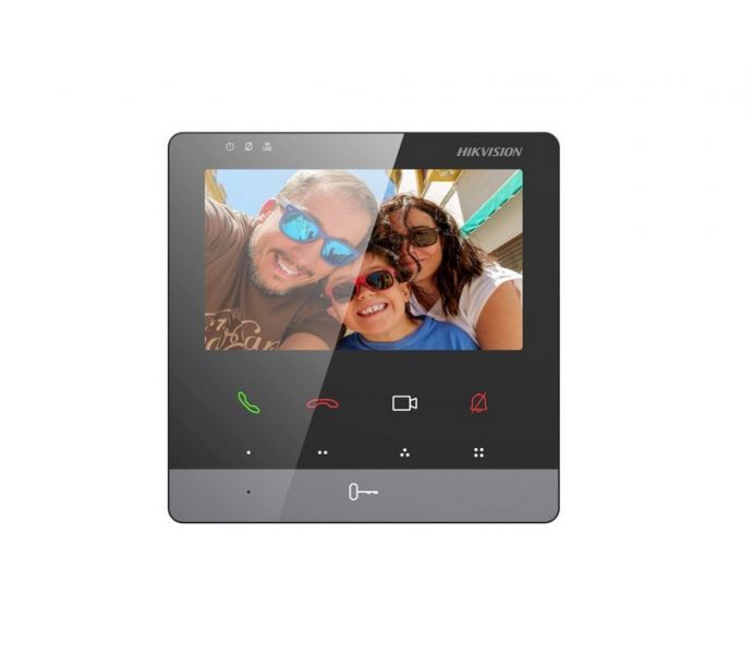 HD videotelefon s tlačítkovým dotykovým ovládáním, 4,3" obrazovka: rozlišení 480 x 272 dpi, 2-vodičový systém, WiFi, možňuje volání do mobilní aplikace HIK-Connect, slot na SD kartu (max. 32GB verze 2), interní paměť 128MB, Flash 32MB, česká lokalizace, 1x alarmový vstup(pro bytové tlačítko), napájení pomocí distributoru DS-KAD7060EY/DS-KAD7061EY 48Vdc ( není součástí dodávky), vnitřní spojení až se 3 vnitřními dalšími monitory(funkce přípojka), DIP switch 5x otočný + 4x binární, pomocí DIP přepínačů lze nastavit, zda se při volání rozsvítí pouze jedna vnitřní stanice (building režim) nebo více vnitřních stanic (villa režim). V režimu villa musí být rozšiřující vnitřní stanice samostatně napájeny 12VDC, prostřednictvím dalšího páru DIP přepínačů lze také nastavit automatické otevírání 1 nebo 2 dveří (režim studio), spotřeba 4W, rozměry: 120 x 120 x 23mm, hmotnost 0,4kg, barva černá, tento model podporuje volání do mobilní aplikace HIK-Connect, Důležité - pro zaznamenání fotky volajícího v monitoru a v mobilní aplikaci Hik-Connect je nutné dokoupit micro SD paměťovou kartu o velikosti max. 32GB, monitor neumí zobrazit streamy z externích kamer a nelze využívat ani interkomové volání !!!