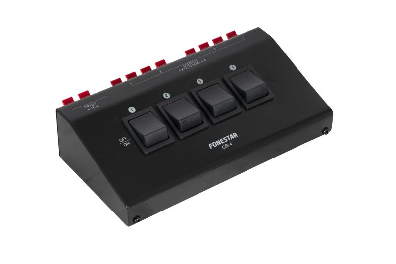 Fonestar CB-4 je stereo přepínač reproduktorů, který umožňuje připojit až 4 páry nízkoimpedančních reproduktorů k jednomu zesilovači. Jednoduše přepíná 1 výstup na 4, ideální pro domácí i komerční ozvučení s více zónami.