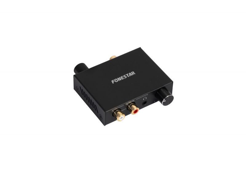 Digitálně-analogový audio převodník se sluchátkovým výstupem a ovládáním hlasitosti Digitálně-analogový audio převodník FO-42DAV převádí digitální, Toslink nebo koaxiální audio vstupní signál z TV nebo digitálního přehrávače na analogový audio signál pro připojení stereo sluchátek a externího zesilovače současně. Poskytuje vysoce kvalitní zvuk. Převádí optický nebo koaxiální digitální zvukový formát SPDIF PCM na stereofonní L/R analogové výstupy. Podporuje nejběžnější vzorkovací frekvence až do 192 kHz s až 24bitovým rozlišením. Vysoce věrný design využívající nové čipy D/A převodníku. Umožňuje ovládání basů a nastavení hlasitosti výstupu. Vysoce pevný, nerušený kovový kryt. Rychlá instalace pomocí plug and play. Pro domácí i profesionální použití.
