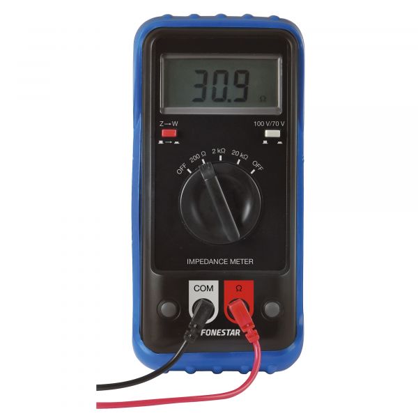 Fonestar MI-21 je měřič impedance určený pro kontrolu reproduktorových linek a transformátorů 70/100 V. Umožňuje snadno a přesně měřit výslednou impedanci zapojených reproduktorů nebo nízkoimpedančních linek, což z něj činí nepostradatelný nástroj pro instalace PA systémů. Jednoduchá obsluha a kompaktní konstrukce zajišťují pohodlné použití při montáži i údržbě.