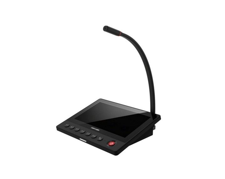 Hikvision DS-QAZ1MP7G1 je mikrofon pro paging s 7-palcovým barevným IPS dotykovým displejem, rozlišení 1024 × 600, možnostl real-time vysílání, mluvení nebo přehrávání souborů z mediální knihovny na specifikovaných oddílech nebo terminálech, uživatelé mohou vybírat jeden nebo více terminálů a nastavit zkratkové klávesy pro vysílání, až 6 zkratkových možností (F1 až F6) lze definovat, zařízení je vybaveno 1-kanálovým mikrofonem na husím krku pro audio vstup a 1-kanálovým 4-segmentovým 3,5 mm audio vstupem, 1-kanálový místní reproduktorový audio výstup a 1-kanálový 3,5 mm audio výstup, podpora přihlášení prostřednictvím účtu a hesla, nastavení parametrů a údržby systému, podpora tlačítka pro nouzové volání, které umožňuje dlouhým stiskem (po dobu 3 sekund) okamžité volání na určené terminály pro nouzové situace nebo na všechny terminály, podpora protokolů ISAPI, ISUP, komprese G.711U (64 Kbps), potlačení ozvěny, podpora klienta HikCentral Professional, 1x síťové rozhraní, podpora TF karty pro lokální úložiště, fyzická tlačítka a tlačítka na obrazovce, napájení 12 VDC, max. 10 W, provozní teplota -10 °C až +50 °C, provozní vlhkost 10 % až 90 %, rozměry: 187 x 50 x 145 mm, hmotnost 0,8 kg, barva černá.
