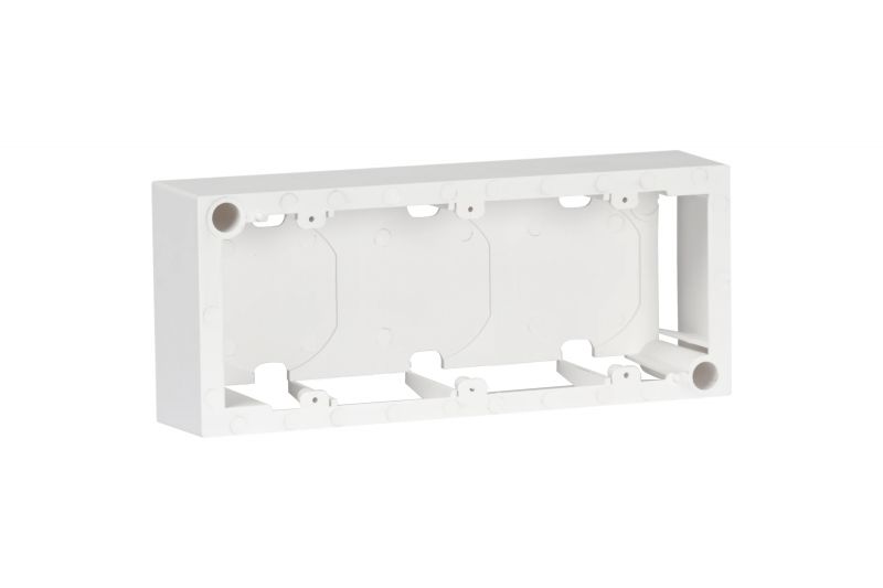Povrchová instalační krabička Fonestar WP-194CJ je natynková instalační krabice určená pro systém modulárních připojovacích panelů, typicky používaná v audiovizuálních instalacích, učebnách, zasedacích místnostech a konferenčních prostorech. Slouží jako upevňovací základna pro až tři moduly konektorových panelů (např. audio, video, datové konektory) a je určena k společné montáži s kompatibilním krycím rámem a chassis WP-195MCH (není součástí balení). Krabička je vyrobena v bílé barvě (RAL 9003) a má rozměry 194 × 81 × 42 mm, které umožňují standardní povrchovou instalaci konektorů ve víceúčelových prostorech.