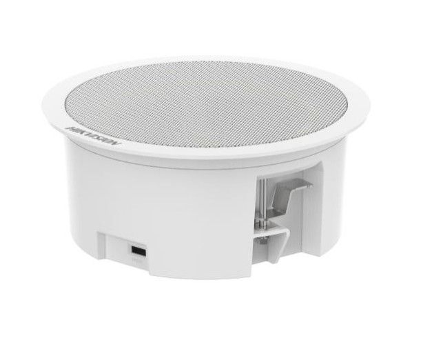 Rozšiřující IP reproduktor určený pro montáž do podhledu. určeno jako podružná jednotka k modelu DS-QAZ1203G1-BE(maximálně 3ks vedlejších reproduktorů lze zapojit k hlavnímu reproduktoru), propojení s hlavním reproduktorem pomocí 2 žilového kabelu, impedance 8 ?, max. hlasitost 97 dB @1m, frekvenční rozsah 300 Hz – 15 kHz, všesměrové pokrytí zvukem, citlivost 93 dB @1W/1m, bez komprese, bez podpory protokolů, bez paměti, bez audio vstupů/výstupů, bez alarmových vstupů/výstupů, provozní teplota 10°~50°, konstrukce plastové tělo s kovovou mřížkou, rozměry: 179 × 78mm, montážní otvor o průměru 160 mm, hmotnost cca 0,3 kg, barva bílá, montáž na strop do podhledu.
