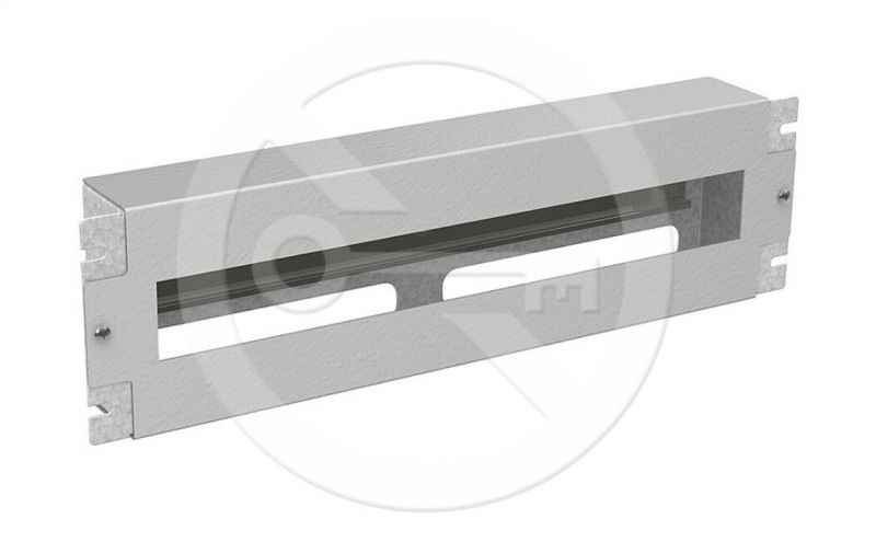 19" uzavřená DIN lišta s držákem, výška 3U, na DIN lištu je možné umístit zařízení do celkové šířky 22 modulů, určený pro montáž jističů, zdrojů a zásuvek, barva šedá (RAL 7035).